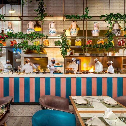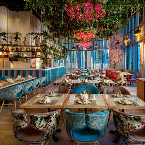 The name says it all – this is about enjoying Lebanese food by the sea. Managed by MBT and with an experienced team occupying the open kitchen, you can expect all the classics, from mezze to mashawi; and don’t skip the desserts as they’re good too. Portions are generous and prices are reasonable. The large, colourful and contemporary dining room also boasts a beautiful beachfront terrace. An ideal spot for post-cultural refuelling after visiting the nearby Louvre Abu Dhabi.