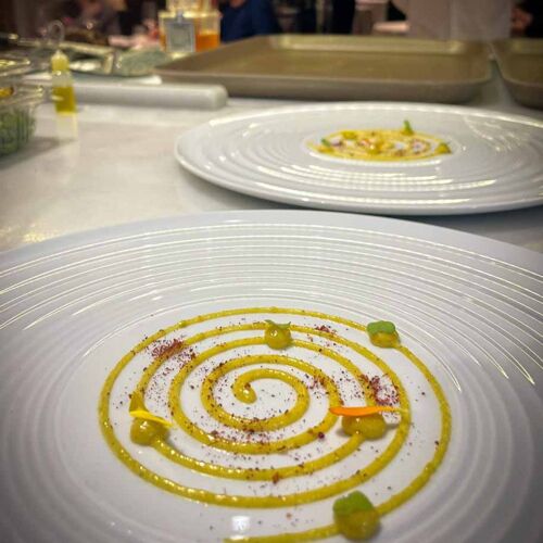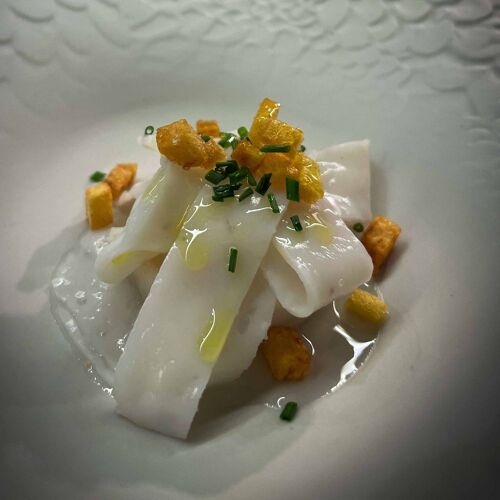 This gastronomic oasis, located along a busy pedestrianised street in the historic quarter of Cádiz, will definitely leave its mark thanks to its contemporary take on some of the more hidden aspects of the city’s cuisine over its 3 000-year history. The decorative combination of stone, brick and whitewashed walls that also extends to the small tables by the kitchen induces a sense of calm that provides the perfect habitat for chef Léon Griffioen (originally from the Netherlands) and his wife Paqui Márquez (sommelier and front of house) to showcase their skills. The cuisine is centred around two exclusive tasting menus (Cotinusa and Erytheia) which provide an insight into the flavours of Cádiz’s cuisine from a contemporary perspective, revealing specific aspects of its history through the region’s very best ingredients. Examples include the elegant “Candié” eggnog with prawns, the tomato escabeche with red shrimp, the “navazo”-grown vegetables from kitchen gardens by the coast, the estuary sea bream, the corvina fish “en adobo” etc.