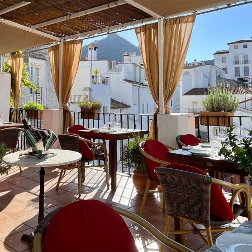 This village in the heart of the Serranía de Ronda could be described as the archetypal picture-postcard “pueblo blanco” given its setting nestling between mountains and its swathe of whitewashed houses. Run by a Dutch couple (Hellen Blott and Barry Smit, the latter in the kitchen), the restaurant is a vision of perfection with its rustic ambience providing a backdrop for international cuisine that has taken a much more traditional twist (such as in the smoked ajoblanco with Payoyo cheese, olives and anchovies), but always based around the very best local and seasonal products (chestnuts, cherries, wild mushrooms, goat’s cheese, figs etc) and a focus on wines from the local area. The terrace boasts stunning views of the valley.