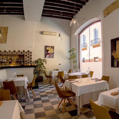 A breath of fresh air for the dining scene in Sanlúcar. This restaurant, located inside the Posada de Palacio hotel opposite the town hall in the centre of the Barrio Alto district, combines a rustic-contemporary layout with antique furnishings in keeping with the architecture of the building (as an example, one of the dining rooms occupies the former stables). The à la carte (with some dishes available in half-portions) features modern cooking that showcases local ingredients, with a strong focus on presentation, alongside a tasting menu that requires advance booking. A large choice of sherries by the glass is also available.