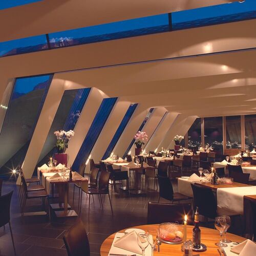 Whether you choose to dine in the cosy Schotte-Sepp-Stube, the bright Veranda or the contemporary, minimalist-style Flickflauder, you’re guaranteed good-quality, seasonally inspired cuisine and friendly service at this restaurant, which hosts an “Appenzell evening” with a buffet every Wednesday. The à la carte is available to non-resident guests from 8pm onwards.