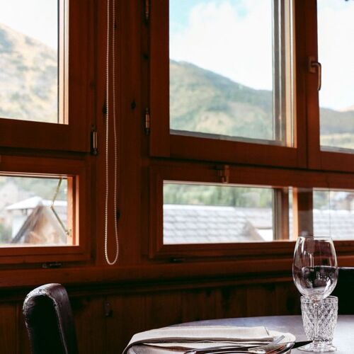 Located in the centre of the village, Cambium, which is Latin for “change” and is also the word to describe one of the outer layers of a tree trunk, is keen for guests to discover the flavours of the Aragonese Pyrenees from a different perspective. In its pleasant, rustic-style dining rooms, featuring a profusion of wood and views of both the village and its impressive surrounding mountains, choose between an à la carte option or two seasonal menus on request (Olla Tensina y Summum) with dishes such as marinated Oliván trout and IGP Aragón veal, which connect us with the culinary traditions of this part of the Alto Gállego region. An impressive array of D.O. Somontano wines completes the picture!