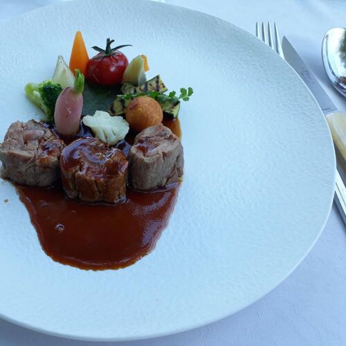 A jaw-dropping view over the Canal du Rhône and an elegant interior set the scene in this renowned regional temple of good food. Generous portions of Ain produce take the limelight in the chef’s well-crafted score, depicted by fascinating flavour combinations and impeccable plating. Special mention for the strawberry-themed dessert that will knock the tastebuds off fans of fine French fare!