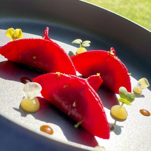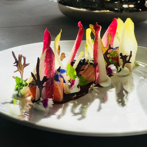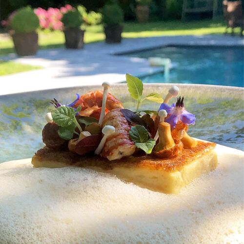 In this enchanting family establishment, open since 1852, you can choose between a stylish dining room dripping in plush details (round, white tableclothed tables, silverware, coffered ceiling, wainscoting and a fireplace) or an idyllic alfresco terrace in fine weather. Chef Fabien Capogna crafts a savvily updated classical score, illustrated by crunchy, lacquered sweetbread, melt-in-the-mouth carrots, tangy seasoning and red port wine. Madame Chavant, who supervises the front-of-house, can be relied upon to greet each guest warmly and individually in line with the house motto: the customer is always right! The spacious guestrooms and pool may well entice you to stay longer…