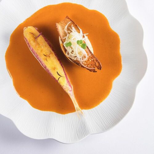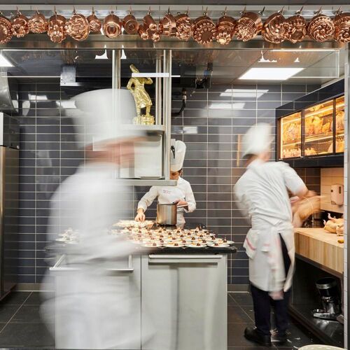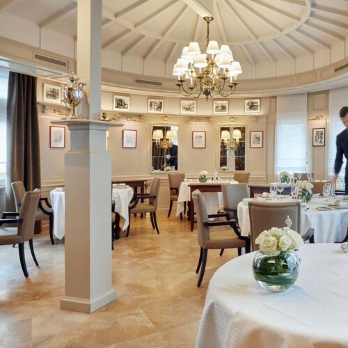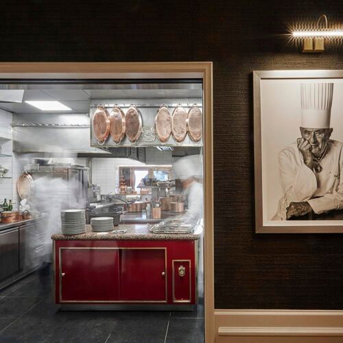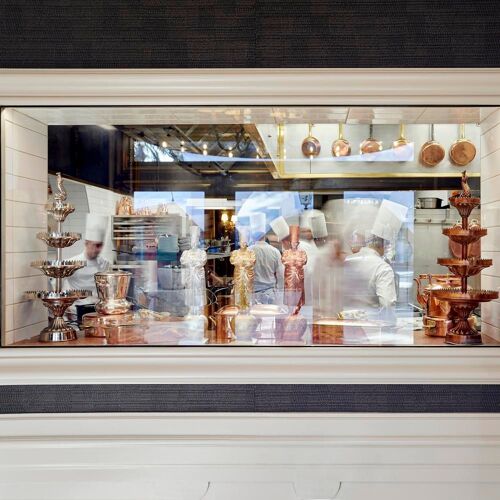 Paul Bocuse’s legend is as vibrant as ever. The “cook of the century”, as gifted in the kitchen as in business and an example for so many of today’s international stars of gastronomy, was no doubt the first modern chef. Faithful to this spirit, the high-flying kitchen brigade (two chefs and a maitre d’, all MOFs, and a world champion of iced desserts) endeavours to uphold this legacy, whilst anchoring the establishment firmly in the present. The master’s recipes have thus been lovingly and painstakingly reworked with a focus on seasonal creations in an updated menu. The performance staged in the dining room is equally dramatic, courtesy of tableside carving and flambées carried out with textbook precision, illustrated by a Dombes duckling served in two courses, lacquered with citrus fruits and flambeed. The decadent dessert trolley is both modern and wickedly addictive. At Collonges-au-Mont-d'Or, the story has far from reached its conclusion.