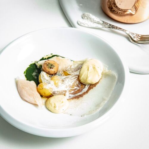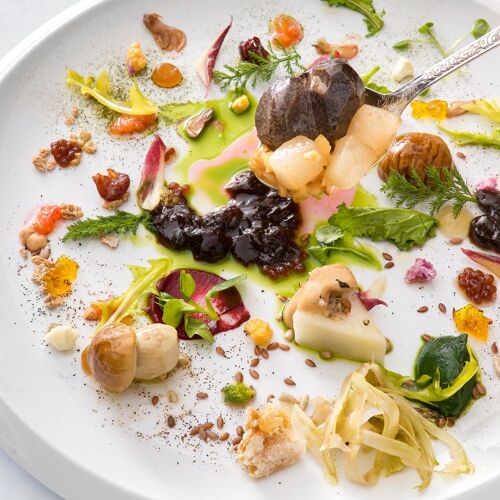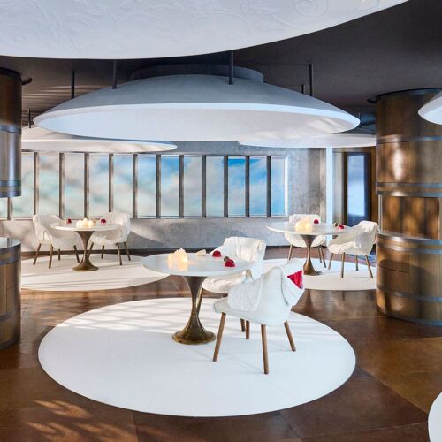 Yannick Alléno has trodden a remarkable path! At one great restaurant after another, the chef from the Paris region has always been adept at channelling his passion into fulfilling his ambition. Within the Hôtel Cheval Blanc, he regales a few lucky diners (just five tables) with a striking repertoire of contemporary cuisine, in which creativity and audacity are entirely guided by the quest for flavours. The Savoie region is shown in its best light through his use of superb ingredients, each of these edible treasures being prepared with the greatest care. This chef's true passion are his sauces, which are truly unforgettable – they are the fruit of a long-term labour of love revolving around extraction and fermentation, as well as consummate technical skill: a master class in haute cuisine.