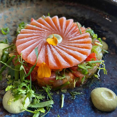 This village on the road to the Alps has long benefited from the generosity of the Carthusian monks, after whom the restaurant is named. The menu features well-executed modern cuisine that makes the most of seasonal (and often local) ingredients. The ever-popular 64°C egg is beautifully paired with a tempting medley of mushrooms; the classic beef chuck is slowly simmered in Mondeuse and gentian as well as cervelle de canut (a herby cheese spread); the craquelin chou pastry is served with Grenoble walnut praline, hazelnut ice cream and melted chocolate – comfort food that uplifts the spirits! Vegetarian menu available. Large terrace in the heart of the village.