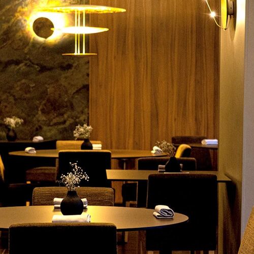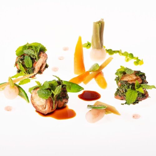Located in the heart of a medieval village, this stone property with its corner tower and spiral staircase, is teeming with charm, and it is here that Renaud Darmanin has transformed this former café into a gastronomic outpost. Following his studies at the Chamalières hotel school, Darmanin went on to hone his skills at some of the world’s leading restaurants: at Paul Bocuse in Lyon; with Frédéric Anton at Le Pré Catelan in Paris; and at Le Parc des Eaux Vives in Geneva. He only works with the finest fresh and local ingredients (chestnuts, in particular), creating delicious, accomplished cuisine that skilfully combines the local terroir with spices from around the world.