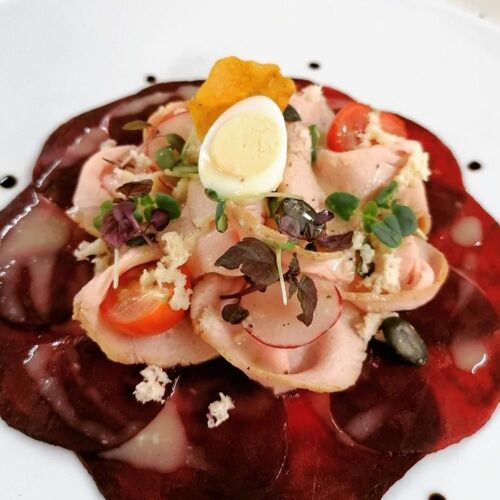 The tasteful decor of this lovingly restored old farmhouse exudes rural charm. In the pleasant dining area with its attractive wooden flooring, diners are treated to a friendly welcome and delicious regional fare prepared by the junior chef. In summer, there's no better place to dine than in the charming courtyard. And if you're looking for a place to stay overnight, the family-run business also has lovely guestrooms available.