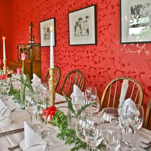 Cuisine, art and accommodation are combined in this long-running family business. Three sisters run both the hotel – with some classic, some stylishly modern guestrooms – and the restaurant, which offers really good seasonally influenced cuisine. There are three cosy dining areas inside; outside, there are tables on the terrace in the shade of the plane trees, which affords views of the orchards! There is art displayed everywhere in the house.