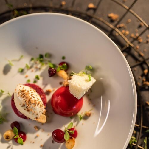 Not only does this 18C hotel offer a comfortable stay (opt for one of the newer guestrooms), it is also a popular modern take on a rural restaurant. Diners are waited on by a friendly front-of-house team in an attractive modern setting with a rustic touch. The food is flavoursome, fresh and seasonal. The main courses are also available in smaller portions. In summer, make a beeline for the gorgeous terrace to the rear of the building.