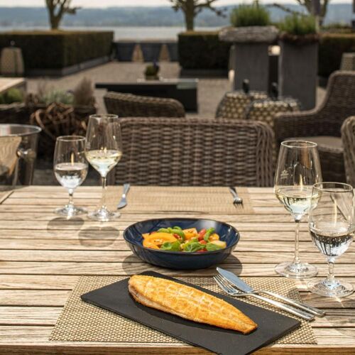 The fantastic location on the lake is a draw in itself – a spot on the lovely terrace with a view of the water is of course particularly sought after! But the interior of this bright, elegant restaurant inside the hotel of the same name is also appealing – the floor-to-ceiling windows overlooking the lake can be opened up. The cuisine is based on classical and international influences, here and there with an Asian touch, and often on regional products. Chic bar and relaxed outdoor lounge.