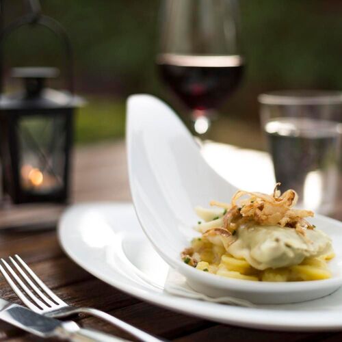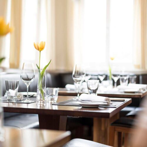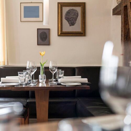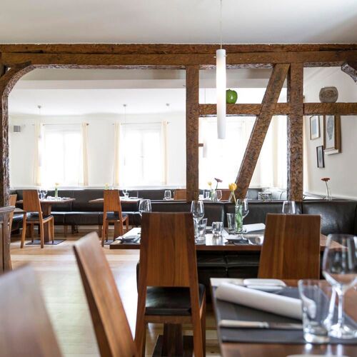 The Trautwein brothers run this former coaching inn with great dedication. Some 300 years old, it features a charming blend of historical and modern decor. The menu includes Swabian classics such as Gaisburger Marsch (traditional beef stew), Maultaschen and Zwiebelrostbraten (beef and onions in gravy), alongside seasonal dishes such as pink-roasted lamb rump with beans done two ways and polenta with herbs, as well as vegetarian options. A lovely leafy terrace lies to the rear of the building. A rustic vaulted cellar can be booked for private functions. Tip: The shop sells soups, sauces, Maultaschen and spaetzle to take away.
