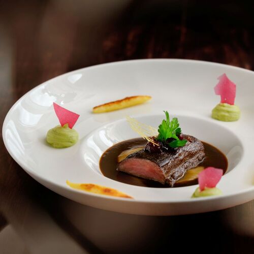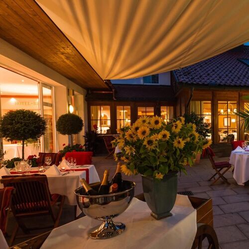 Take a seat in the elegant yet cosy, country-style interior – or, in summer, out on the beautiful garden terrace – and choose from a seasonal menu. Vegetarians are also catered for. For overnight guests there are cosy contemporary guestrooms.