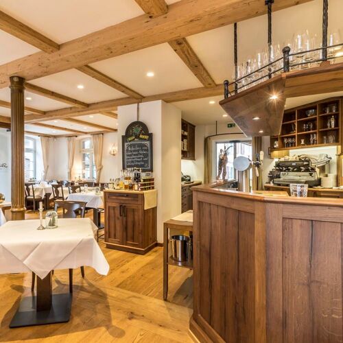 In the centre of town is this pretty, lavishly restored 400-year-old house. You can sit in the cosy, tastefully decorated restaurant, in the modern wine bar or on the terrace that adjoins the two. There, you will be served seasonal and Mediterranean-influenced classic dishes, accompanied exclusively by regional wines. There are also guestrooms for a pleasant overnight stay.