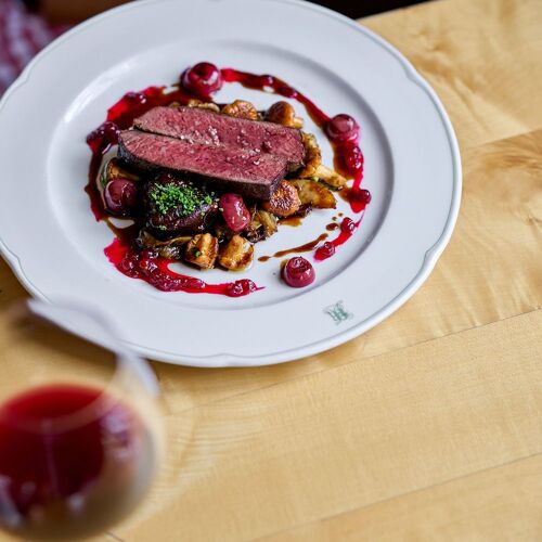 Following stints at various MICHELIN-starred establishments, Konstantin Keller has taken over this much-loved traditional inn. He is the youngest son of the Keller family, who run Schwarzer Adler across the road. "Down-to-earth, regionally inspired cuisine: the best of the simple things" – that's the promise here, and it could hardly be more apt. Eschewing superfluous creative flourishes, the cuisine is all about quality ingredients, meticulous craftsmanship and full, authentic flavours. Put simply: The food is just fantastic! This holds true for the cordon bleu, the escargots with garlic and parsley butter or the pâté de campagne, not to mention the Zwiebelrostbraten (fried beef and onions in gravy) – the version made with dry-aged Black Forest herb-fed pork variant is interesting. There are also daily specials and a short afternoon menu. The wine list features a selection from the restaurant's own estate (Franz Keller) along with other German and international labels. In fine weather, be sure to make the most of the charming courtyard terrace.