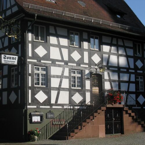 In this historic inn with a lovely half-timbered façade and a cosy rural-style feel inside, the young owner serves up dishes such as braised knuckle of pasture-raised lamb with Madeira, or pike-perch fillet with chanterelles. The terrace lies under a big old chestnut tree. There are also guestrooms for an overnight stay.