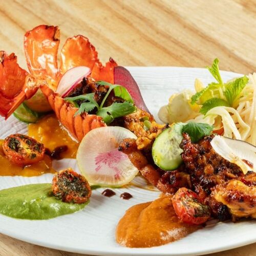 The large menu is impressively prepared and is founded on Indian specialties. However, the range of offerings is further enhanced by charcoal-grilled meats and seafood, as well as an abundance of Asian specialties. The Punjabi fish masala features the catch of the day, which is gently cooked in a zesty, moderately spiced tomato-based sauce enriched with ground cashews and flecked with herbs and spices. It comes served with spice-tinted basmati pilaf and Indian-style pickled vegetables and is best paired with butter-brushed naan hot off the tandoor.