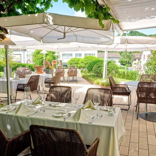 Melanie and Denis Schmitt fulfilled their dream of owning their own restaurant when they opened Le Murenberg over 10 years ago. As a pastry chef, she takes care of desserts but is also the charming head of service. Donning his apron in the kitchen is Denis Schmitt, who, hailing from Alsace, feels a connection to French cuisine – we recommend the "Breton Weeks" held in October, for example. His modern-inspired classic dishes are as much about the excellent craftsmanship as they are about the high-quality produce. Feel free to steal a glance into the kitchen. Incidentally, the chef comes from a family of winemakers, so you can look forward to a fine selection of wines – the half bottles are a good option. The wallet-friendly lunch menu is also very popular. You can't beat sitting on the elegant terrace.