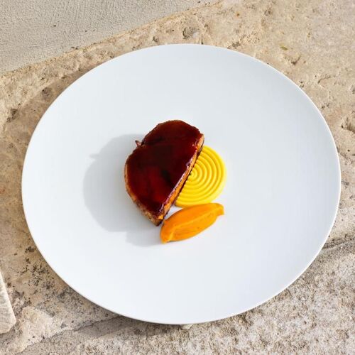 Housed in a 15C building in the centre of town, this restaurant boasts beautiful vaulted ceilings and a smart, elegant ambience. The young owner-chef serves cuisine with a traditional focus which is reinterpreted in modern style and made from excellent regional ingredients, as well as a few fish options. Efficient, punctual service.