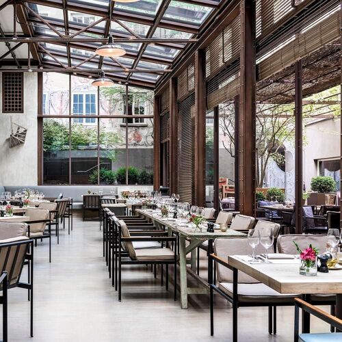 With a fabulous light and high-ceilinged industrial-style conservatory by Belgian interior designer and art dealer Axel Vervoord, the restaurant in the luxurious Grand Hotel Bayerischer Hof is exceptionally chic. At the stove, Philipp Pfisterer certainly knows his craft. He and his team cook up classics such as beef tartare, as well as modern dishes such as "fillet of sturgeon from Lombardy with an almond crust & saffron cream" or "grilled flank steak with salsa verde". At lunchtime, the two- or three-course business lunch is a good deal. The very quiet location is also pleasant – and something of a rarity in such a central part of Munich.