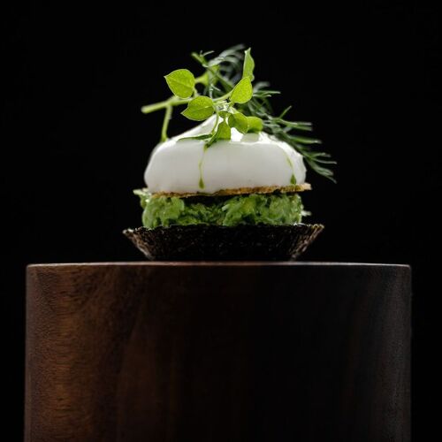 Music and nature enjoy guest-star status at Cuchara. The former adds a relaxed lounge mood, while the latter, embodied by a wood- and leather-rich interior, paints a distinctive trendy portrait. A seven-metre-long glass tree sculpture hanging from the ceiling seems to float over the dining room! Cuchara is mysterious, confidential and quirky, and Jan Tournier gets a kick out of surprising diners. His punchy, no-holds barred cuisine is offbeat and individual and he manages to astound with just a few ingredients and lashings of creativity, often tinged with Asian notes. Right from the appetisers, like oyster in plankton butter and crunchy apple in basil and kombu oil, there is no doubt that you are in for an unorthodox culinary experience. How about pigeon leg, cooked once, before being lacquered in its jus, and then cooked again until crispy in wood charcoal, before being served with a gutsy gravy enriched in basil oil and coriander seeds and coated in an earthy, slightly sweet mousse of potatoes and celeriac? Simply divine! Unique, expressive, fascinating cuisine that gives rise to a culinary banquet that will knock the socks off your tastebuds!