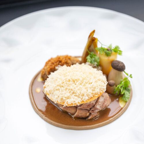 Seppe Bleus and Liese Bams have taken over the business and welcome you to De Fakkels 2.0. They have kept its soul intact, so the imposing building still exudes warmth and a sense of romance. Goose feather lampshades, designer lighting and wooden ornaments make for a unique setting. In a bid to keep up with the times, the menu features exciting new combinations, such as the bright and zesty interplay of calamansi and orange with ultra-fresh scallops. The depth of his sauces, like the rich game sauce that graces the venison fillet, is testament to the chef's culinary mastery. This long-established haven for foodies is in good hands.