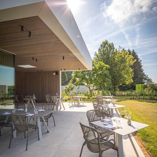 Eminently in tune with his region, Clément Petitjean is a proud ambassador of his province of Luxemburg and also of Gaume. This is illustrated by the extremely close ties he has forged with local producers. The view of the meadows and the natural slant of the contemporary interior incite the diner to commune with nature, particularly beneath the fine-meshed cloud structures hanging from the ceiling. A fire burning in the hearth further adds to the friendly, home-from-home vibe in the lounge. Make your pick from the sommelier’s splendid cocktail trolley, before sampling Petitjean’s felicitous cuisine. He always cites the names of the suppliers whose ingredients feature in his cooking. He enhances their hard work with, for example, acidic fermented notes, in a bid to strike the perfect balance between the distinctive flavour and intensity of the main, invariably local ingredient. He may marinate Lothar Vilz’ Limousin veal in black beans, before cooking it medium rare and then adding a spicy side dish of beans and malt, a medley of salsifies and an incredibly punchy gravy made from brown ale. The primarily Belgian cheese platter is well worth sampling. One thing is certain: Petitjean’s highly personal and virtuoso celebration of his region hits the spot every time!