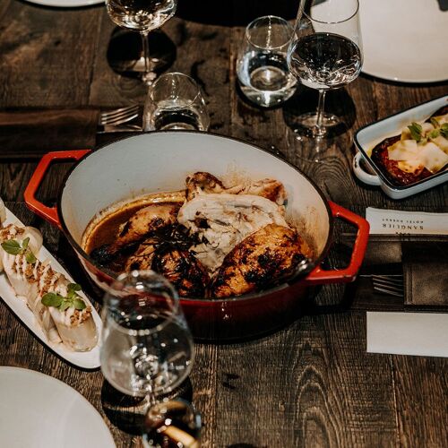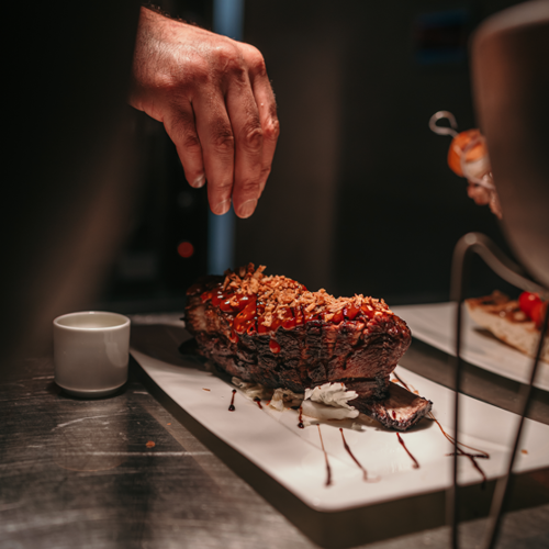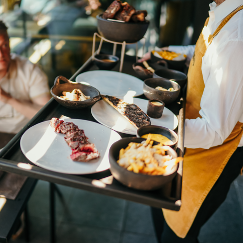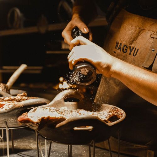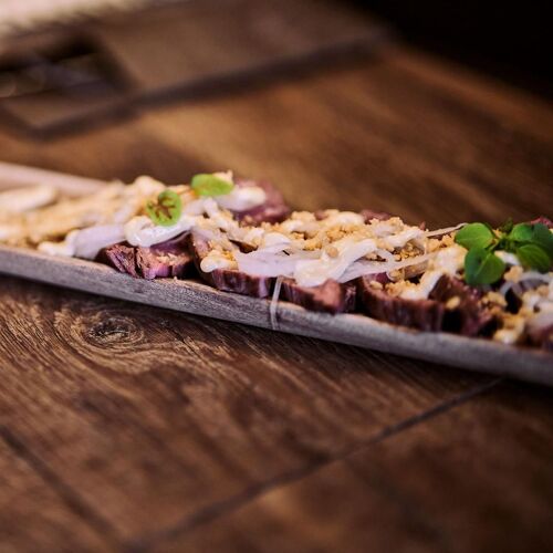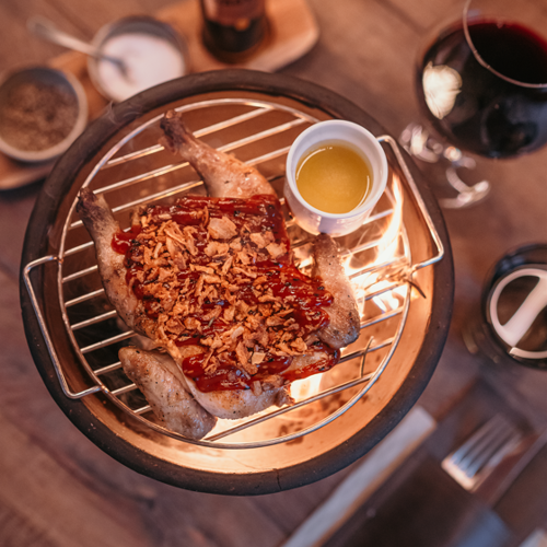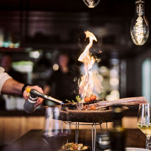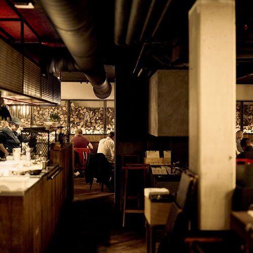 Wout Bru is at the helm of this chic BBQ restaurant. Vintage lighting sets the scene in the tasteful interior, creating an intimate vibe. The open grill, striking bar counter and the dry-ageing fridge all catch the eye. You can expect prime beef from breeds like Wagyu and Holstein, gutsy sauces and a host of meat-based recipes, concocted with consummate culinary know-how.