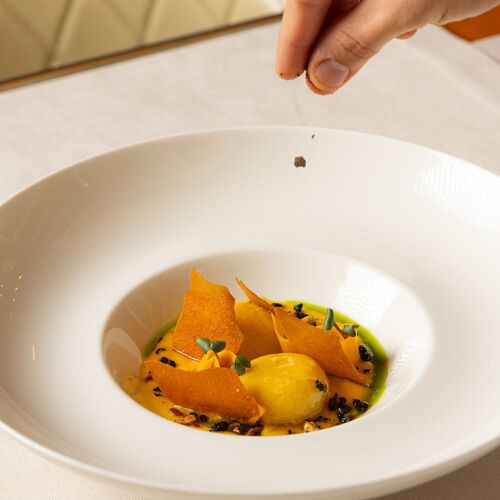 Located in Novi Beograd, the modern part of the capital, this restaurant features a dining room dominated by a striking aquarium. The experienced local chef is supported by a professional and attentive front-of-house team. Both the tasting menu and the extensive à la carte selection showcase original creations—internationally inspired dishes with a touch of Italian flair (including pasta and risotto), complemented by select Serbian ingredients. True to the restaurant’s name, the chef takes guests on a gastronomic journey full of surprises and exceptional quality.