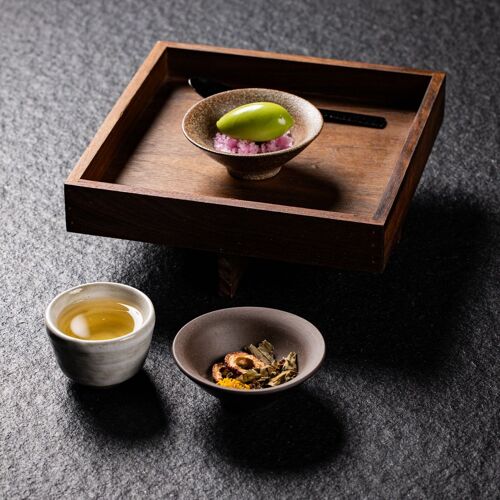 It's worth seeking out this restaurant, the entrance of which is a bit hidden. A long, mirrored corridor leads you to an interior characterised by distinctive architecture and a clean-lined, minimalist, Far Eastern design. The food is no less interesting: The Japanese-inspired cuisine is completely vegan, with fermented food playing a major role – hence having built their own Fermentation Lab. The creative seven-course set menu can be extended by an additional course. The dishes seem pleasingly pared back, although a lot of effort has gone into them. An individual signature is evident, for example, in the delicate maitake with robust roasted aromas and a subtle note of thyme, accompanied by a sensational sauce made from mushrooms, sake, port wine, vanilla and coffee, which inspires with fantastic depth. The intriguing tea pairings are an absolute must! Top-notch teas are celebrated here and presented in depth. It is also possible to go for a mixture of tea and other drinks pairings.
