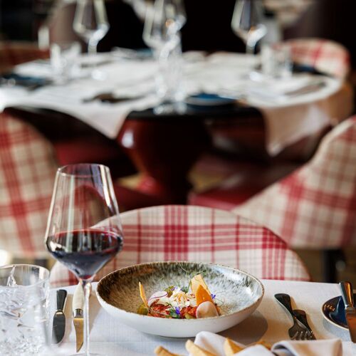Modern chic with an Alpine touch: Done out in warm tones, with lovely hardwood floors, striking designer lamps and an open kitchen complete with an impressive charcoal grill, this restaurant – part of the equally attractive Bergwelt Grindelwald hotel – has a truly unique atmosphere. The cuisine, inspired by the region, is also very appealing. For meat lovers, the fragrant, golden-brown Wiener schnitzel is sure to whet the appetite, and the same goes for the top-quality signature cuts from the barbecue. Vegetarian options are also available. The well-curated wine list predominantly features Swiss and French labels.