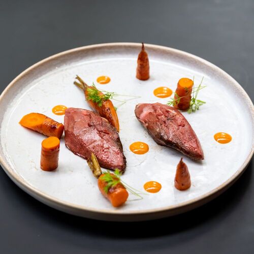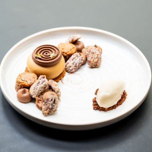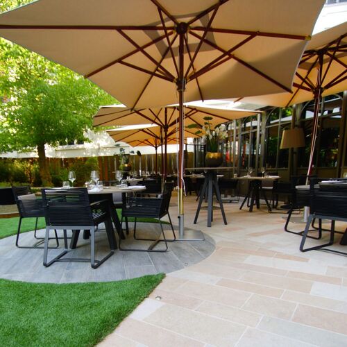 In this contemporary setting, part of the dining area stretches out into a veranda with a curved floor plan and a view of the garden of this property. The chef's modern cuisine is rooted in Burgundy's terroir and enhanced by occasional Asian touches. The desserts, meanwhile, get back to basics with well-crafted creations.