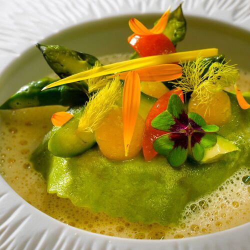 Every detail of Stéphane Lefebvre’s aptly named establishment has been endlessly fine-tuned, as the top-to-toe renovation demonstrates. Brightly welcoming, the contemporary interior mingles Scandinavian influences with discreet nods to the Seventies. The attentive table service and cosy vibe instantly make you feel at home. Chef Lefebvre has harnessed his creative talent in a bid to celebrate flavour and ingeniously balances a dish’s bitterness or acidity with a few well-judged side dishes. His attention to detail shines the spotlight on outstanding ingredients such as Piétrain pork and Ardennes game. He might pair immaculately cooked scallops with sweet parsnips, subtly smoky eel and an exquisite drizzle of watercress, without forgetting the final flourish of tartare of smoked scallops, adorned in the roe and mild chili pepper. His stellar talent and know-how have found favour with a large crowd of discerning regulars. The varied seasonal theme (seafood, game, etc.) menus and extensive à la carte offering are packed in enticing appeal and exciting gourmet discoveries.