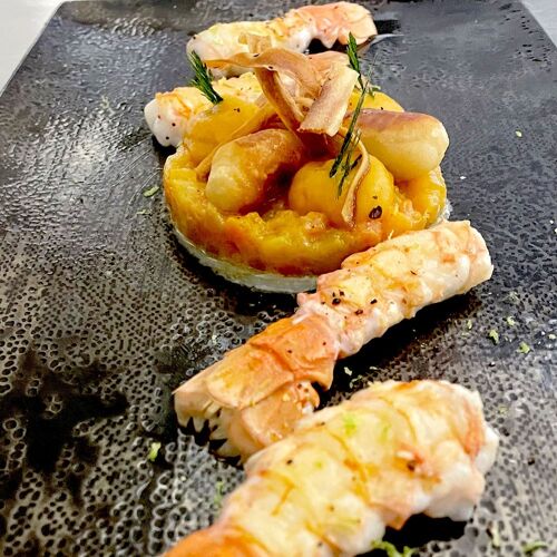Aptly located at the end of the quayside (hence the name), the fashionable slate grey glazed front of this restaurant overlooks the Atlantic and Mont St Michel. Chef Romain Roland, after a stint at a star restaurant in Corsica, crafts ambitious, creative cuisine, dotted with subtle Mediterranean notes.