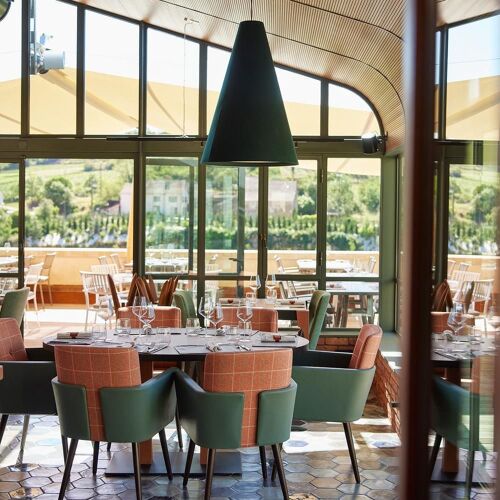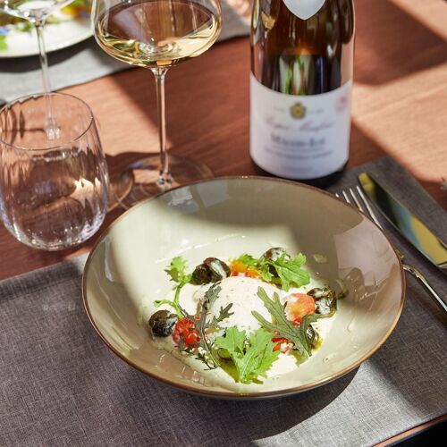 When a winemaker from the Côte de Beaune meets a starred chef, you get Prosper! This contemporary bistro in the Château Saint-Aubin is the result of a collaboration between the Prosper Maufoux wine estate and restaurateur Édouard Mignot (restaurant Ed.Em in Chassagne-Montrachet). The chef proposes a modern menu – gnocchi and shiitaké with comté and vin jaune cream; pork fillet mignon with sweetcorn foam, cabbage and bacon... Pleasant terrace with a view of the vineyards.