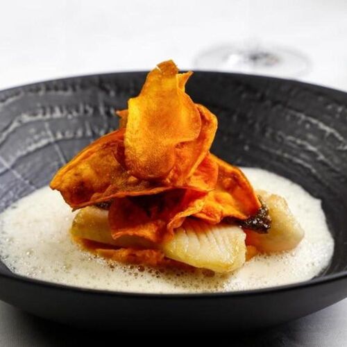 A resolutely maritime atmosphere pervades this welcoming restaurant, an institution in La Trinité-sur-Mer since 1965. On the menu: seafood and fish, as well as a handful of options cooked on the open fire. Chef Rudy Deniaud's dishes are packed with textures and flavours, eg pollock served with Chantenay carrots, peas, raspberries and soy. There is a nice selection of wines and a terrace with a pleasant view of the harbour.