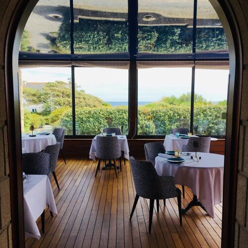 Imagine wild moorland buffeted by the ocean with the rocky island of Raguenez glinting in the sunshine just a short distance away. Sustainable gastronomy is the name of the game here: the ingredients are strictly seasonal, harvested from the vegetable garden or sourced from small-scale producers, and the fish is caught locally. Comfortably seated with a view of the sea, diners enjoy Jérôme Gourmelen's dishes, characterised by well-defined flavours and careful presentation, eg his symphony of raw ikejime fish. Friendly service.