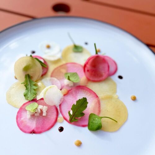 "Our local suppliers are all from organic farming or animal husbandry. The fish we cook is from small-boat fishing and we have set up an orchard and an aromatic garden, both managed according to permaculture methods."