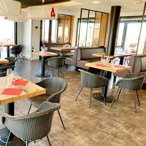Overlooking the grandiose scenery of Pointe Saint-Mathieu, take a seat either on the terrace and breathe in the fresh sea air, or indoors in a contemporary decor of untreated wood and rattan furniture. The culinary repertory showcases authentic flavours of Brittany: shellfish, fish, buckwheat and seaweed…