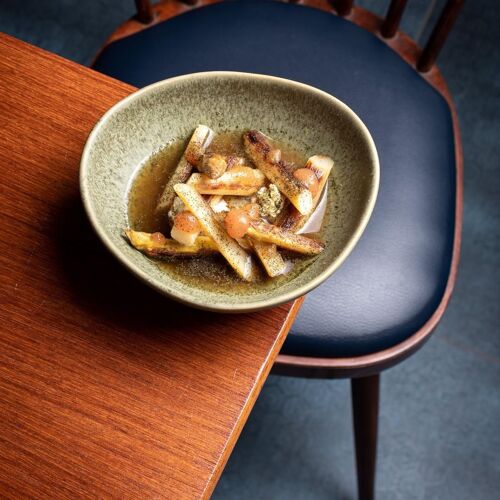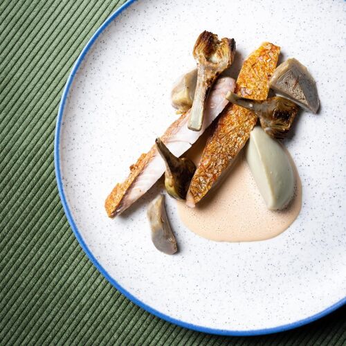 Nestling in a valley through which a river flows, this former mill sports a stripped-back, industrial-style interior. Two brothers, one in the kitchen and the other in the market garden, concoct healthy, natural cuisine based on seafood ingredients (fish, shellfish, crustaceans) and vegetables, some grown on site; meat is shelved. From the 100% plant-based starter, such as Jerusalem artichoke with lemon and black garlic purée, to the seafood main, like John Dory with cauliflower, vinegar-flavoured shiitakes and fish bone jus, Rolland hits the nail on the head every time!