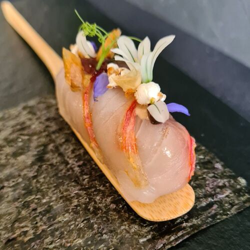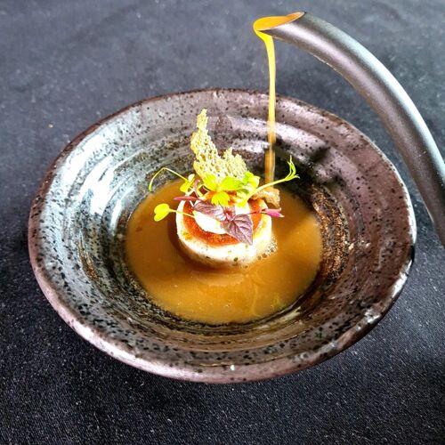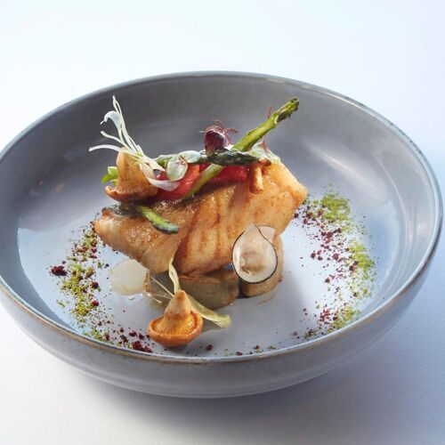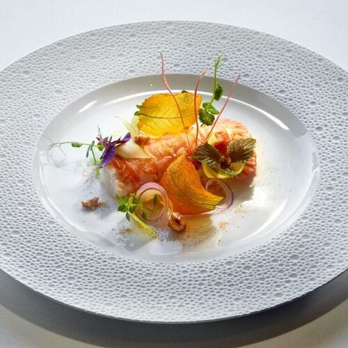 This elegant Brittany sports a huge stone fireplace and vaulted windows that command a splendid view of the bay and island of Batz. The panoramic dining room is the scene of a feast of gourmet delicacies that shine the spotlight on first-class Breton seafood, like mackerel, but also poultry. Loïc Le Bail is not averse to bold combinations, often influenced by Japanese cuisine – in a nod to his wife and his sous-chef, both of whom are Japanese. The magnificent seaside setting invites us to meditate and wind down, possibly staying over in one of the hotel’s guestrooms.