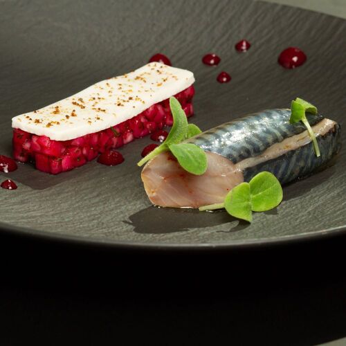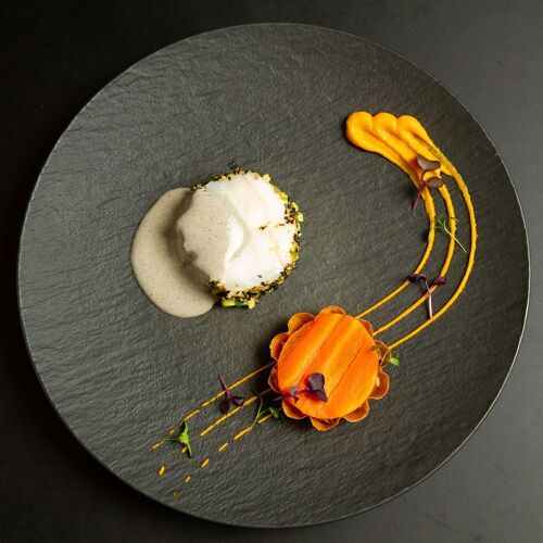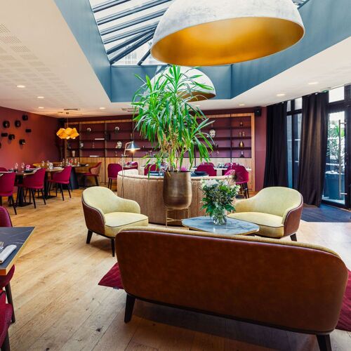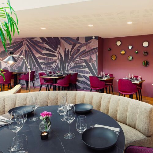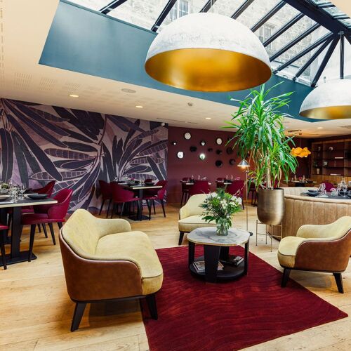 Chef Sébastien David signs an enticing score using top-notch, mainly local Brittany ingredients. Expertly balanced flavours, consummate cooking and a sprinkling of bold combinations define the score: pollock paired with papaya-samphire-marjoram seasoning or a fennel-themed dessert flanked by a white chocolate ganache and bergamot seasoning. This painstaking attention to detail is also mirrored in the bright, relaxed interior whose pleasant lounge-dining area is set in a conservatory, adding both warmth and light to this town centre establishment.
