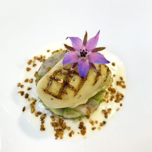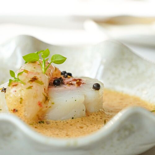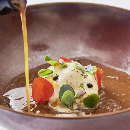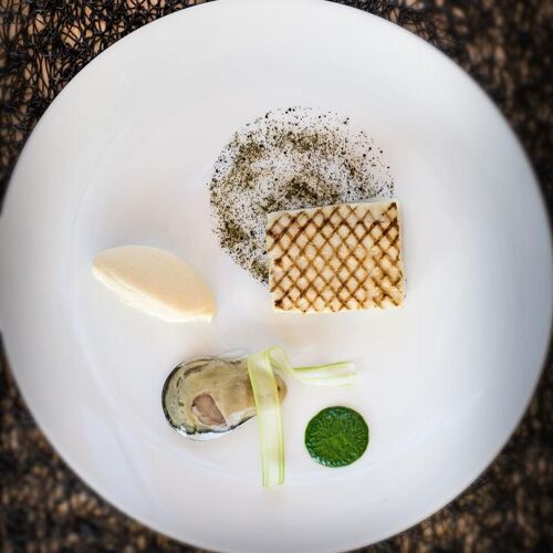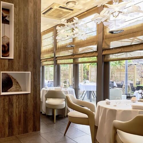 A vibrant, indulgent homage to the Brittany he knows and loves! Thriving in his native region, Ronan Kervarrec eschews trends in a bid to tell his personal and professional story through food. The culinary tale he conjures up here features buckwheat, buttermilk, fish, shellfish, butter, seaweed, gavotte (a thin, crispy pancake), chouchen (a local form of mead) and sablé breton. In tribute to his father, who was a saucier at the George V, the chef expertly executes a range of jus and sauces, which vary from intense to subtly flavoured. Floor to ceiling windows give onto a terrace overlooking the pretty garden. Very professional welcome and service from the chef's wife and her team. Guestrooms for overnight stays and a small delicatessen where you can purchase gourmet souvenirs.