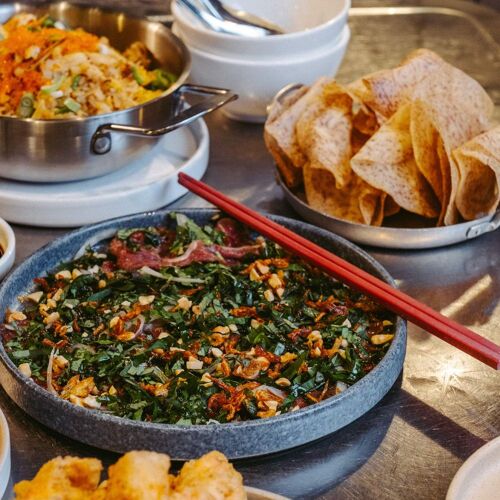 Chef Nguyen Thi Thanh's legacy continues at this beloved East Vancouver spot. The menu is endlessly enticing and inspires immediate decision paralysis. One could fill up fast on starters like fried black tiger prawns with fish sauce or beef carpaccio buried under a blanket of fresh herbs, pickled onions and lime vinaigrette. Garlic fried noodles are another big hit, but then will you still have room for the wagyu beef noodle soup?