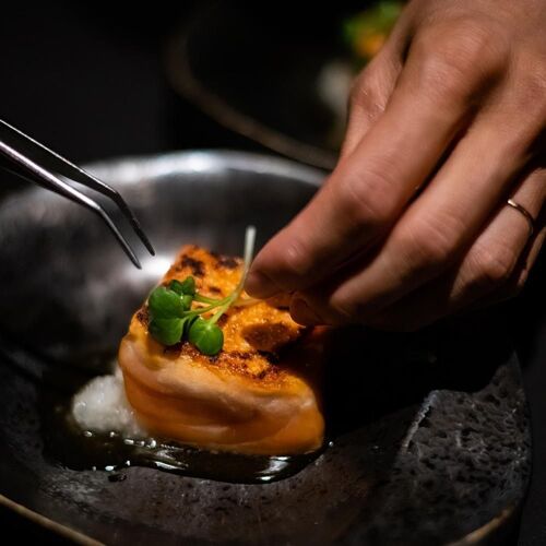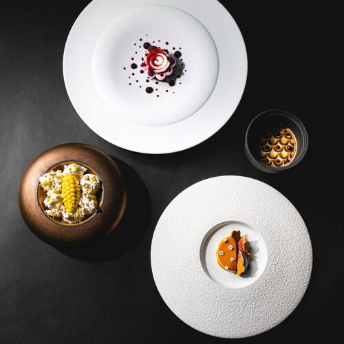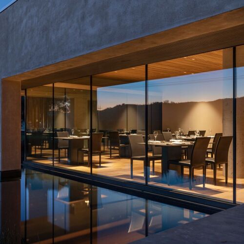 Celebrated Wine Country chef Douglas Keane has returned to the fore with his re-launch of Cyrus in Geyserville. Set among rolling vineyards, the dining rooms are housed in a coolly modern concrete and glass lair that offers a striking contrast to the verdant surroundings—an old-growth plum tree in the courtyard is a nod to their past as the Sunsweet prune packing facility.