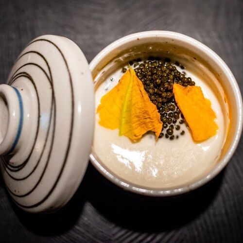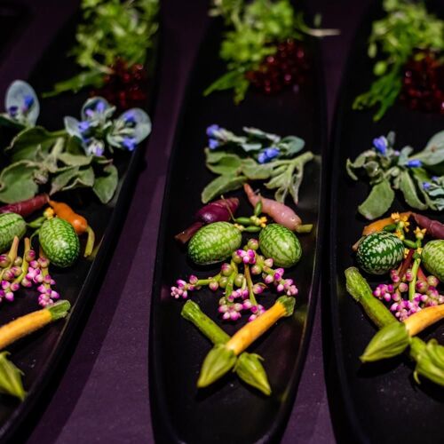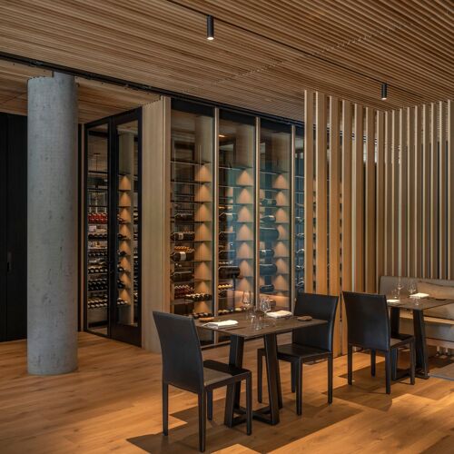 Dinner is an ebullient experience that progresses from canapes and Champagne in the lounge, to small bites in the kitchen, substantial compositions in the dining room and a sweet finish in the Chocolate room. Farm-fresh crudité to be dipped in umeboshi emulsion; Sonoma duck with turnips and hoisin; and black sesame financier with shaved plums are just a few examples of the impressive, globally accented cuisine.