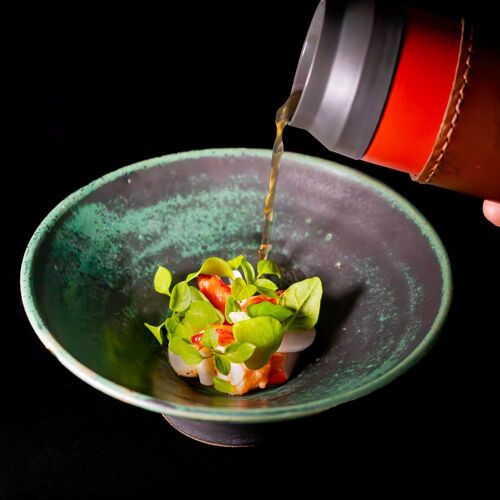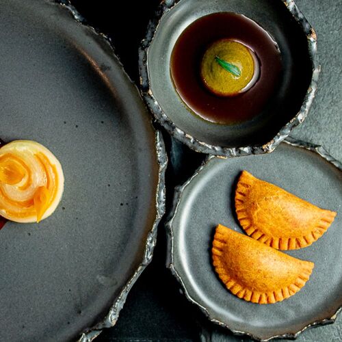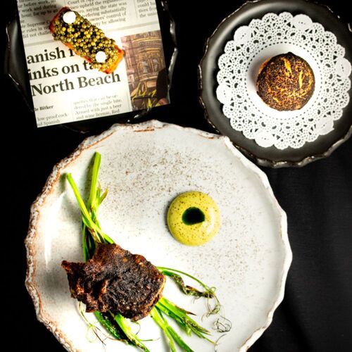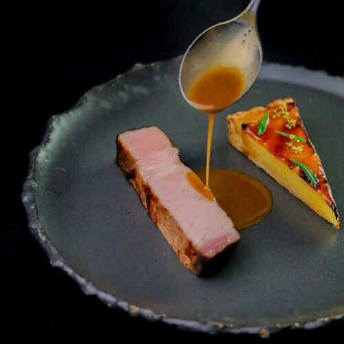 Highlights include a trio of oysters, each gussied up in a different fashion: raw with pickled ramp foam and rhubarb; broiled à la Rockefeller, in a creamy green garlic glaçage; or fried with a spicy XO chili oil and tangy ranch. Bold flavors presented with flair are a common thread, like in a buttery A5 Wagyu ribeye paired with a sweet-and-savory oxtail and sour cherry tart, perfect lattice crust, and all.