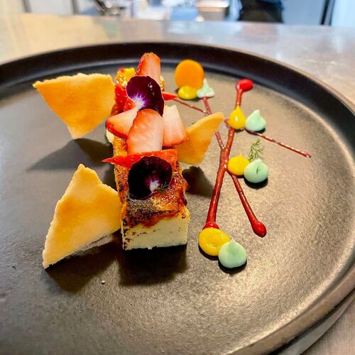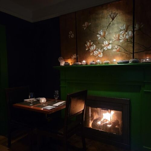 This kitchen offers a variety of creative selections on both the three- and five-course tasting menus, which spin to highlight the seasons. Chilled butternut squash soup in a shot glass makes a soigné amuse-bouche and is a delicious way to start a meal. Then a brick-shaped, perfectly cooked strip loin is accompanied by baby zucchini, pearl onions, confit mushrooms and smoked kale sauce for added enrichment.