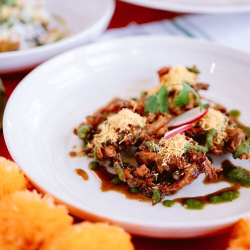 From the very first moment you walk into this unique Indian gem, you will feel right at home. Ever so transporting, the space is a veritable comfort zone—stylish, breezy, and inviting. Over in the kitchen, the cooks are focused on vibrant and sumptuous renderings from the nation's myriad of regions. While the best dishes tend to be more traditional at heart, they boast a host of intriguing garnishings. Kale pakoras are deep-fried fritters served with onions in a light chickpea batter and a spectrum of chutneys; while lamb curry reveals a leg of lamb slow-braised with over 21 Indian spices.